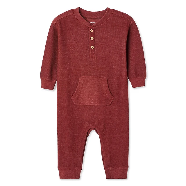 George Baby Boys' Waffle Henley Romper, Sizes 0-24 months