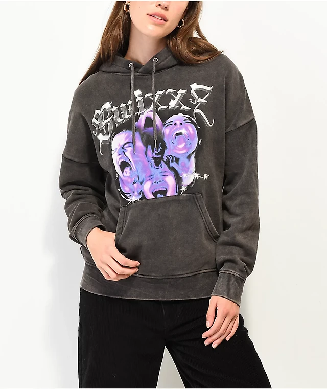 Women's Antigua Heather Black San Francisco Giants Logo Fortune Quarter-Zip Pullover Jacket