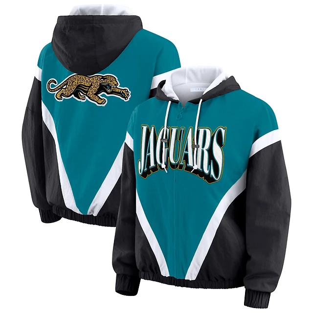 Women's WEAR by Erin Andrews Orange/Navy Chicago Bears Retro Crinkle Full-Zip Hoodie Windbreaker