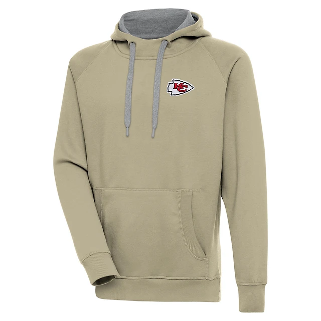 Men's Antigua Khaki Kansas City Chiefs Victory Pullover Hoodie