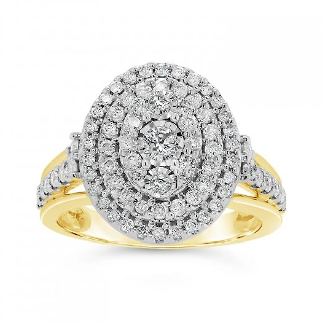 10K Yellow Gold 1.00CTW Diamond Oval Shaped Fashion Ring