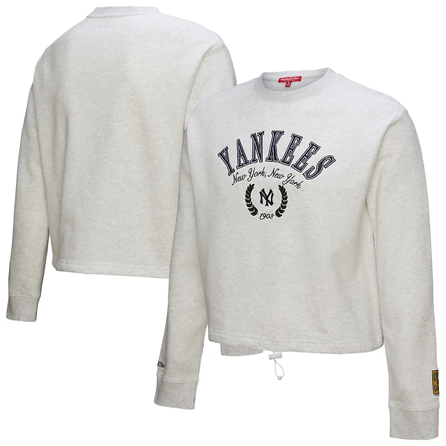 Women's Mitchell & Ness Heather Gray New York Yankees Cropped Toggle Pullover Sweatshirt