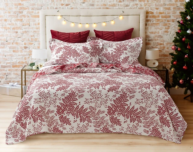 Vermillia Duvet Cover, Cotton Set, Botanical, Red,