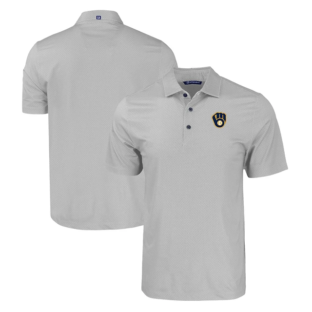Men's Cutter & Buck Gray Milwaukee Brewers Big Tall Pike Eco Tonal Geo Print Stretch Recycled Polo