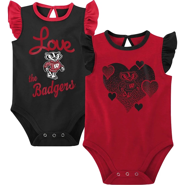 Girls Newborn & Infant Red/Black Wisconsin Badgers Spread the Love 2-Pack Bodysuit Set