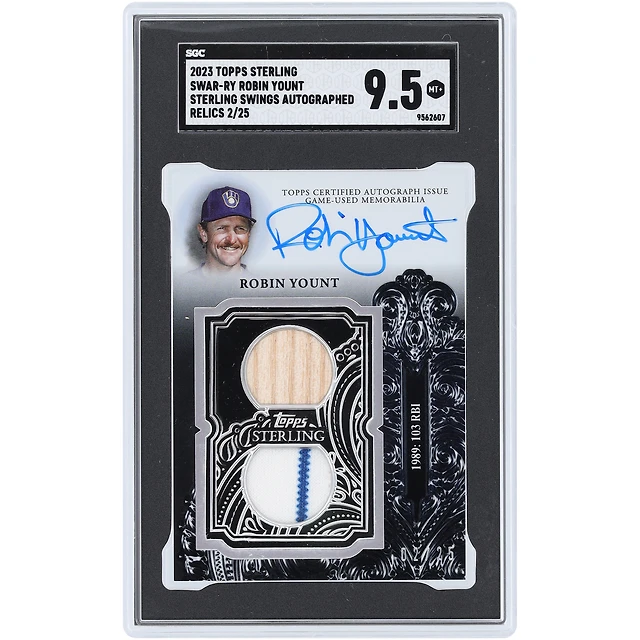 Robin Yount Milwaukee Brewers Autographed 2023 Topps Sterling Bat & Jersey Dual-Color Pinstripe Relics #SWAR-RY #2/25 SGC Authenticated 9.5 Card