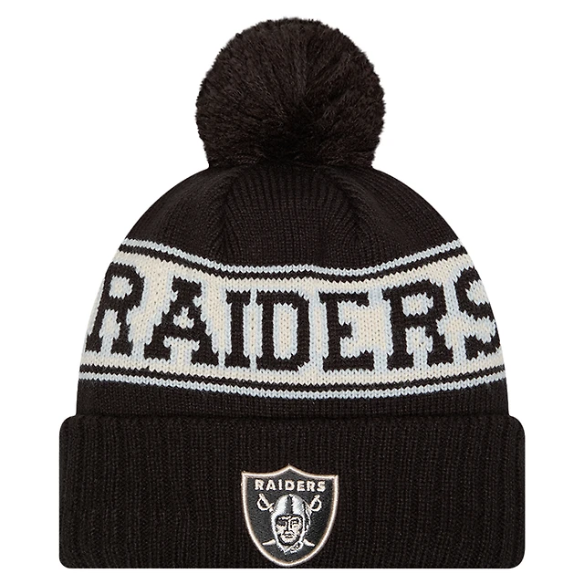 Men's New Era Black Las Vegas Raiders Retro Cuffed Knit Hat with Pom