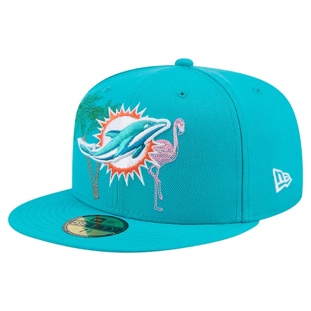 Men's New Era Aqua Miami Dolphins State Stitch 59FIFTY Fitted Hat