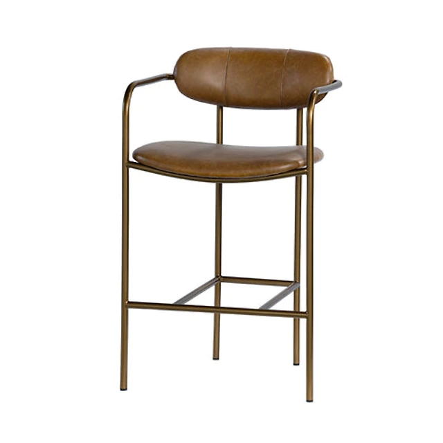 Parker Brown Leather Seat Gold Metal Counter Stool