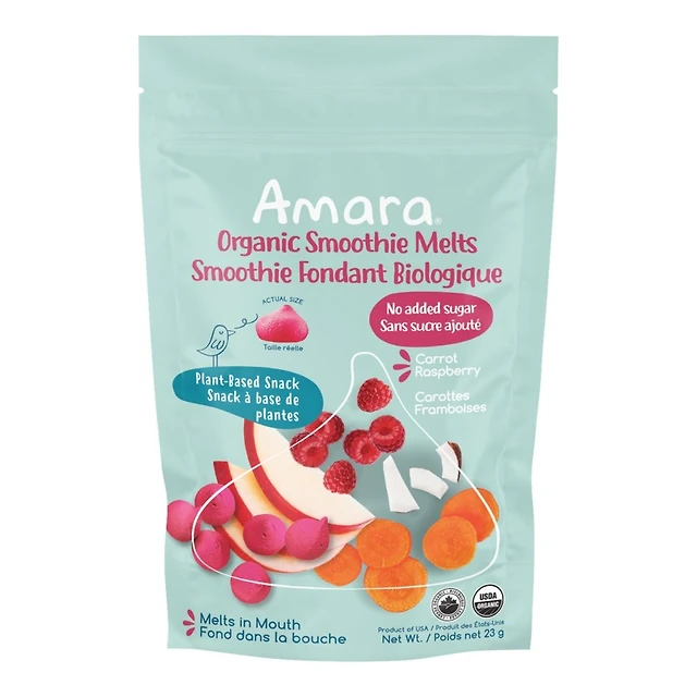 Amara Organic Smoothie Melts Snack - Carrot Raspberry - 23g