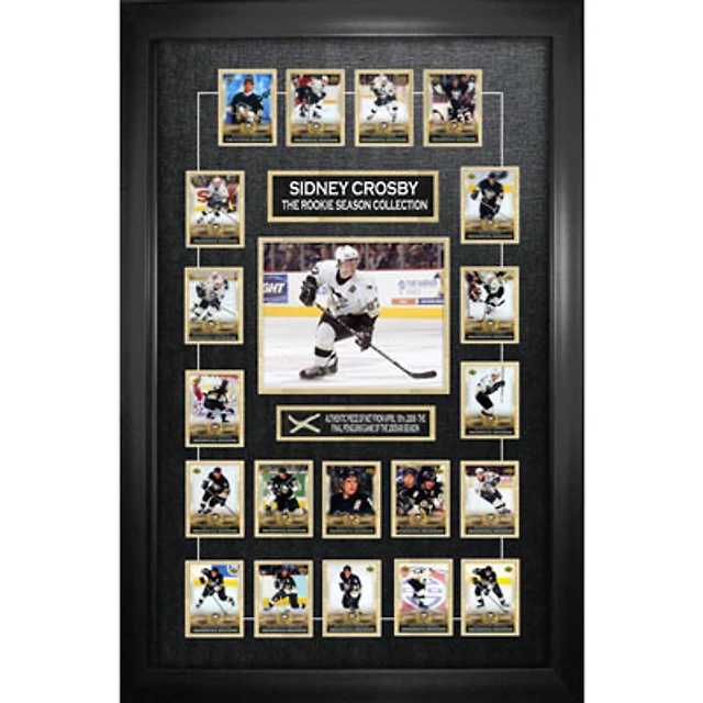 Frameworth Pittsburgh Penguins: Sidney Crosby Framed Photo w/ Hockey Card Collage & Piece of Net from 2005-2006 Season