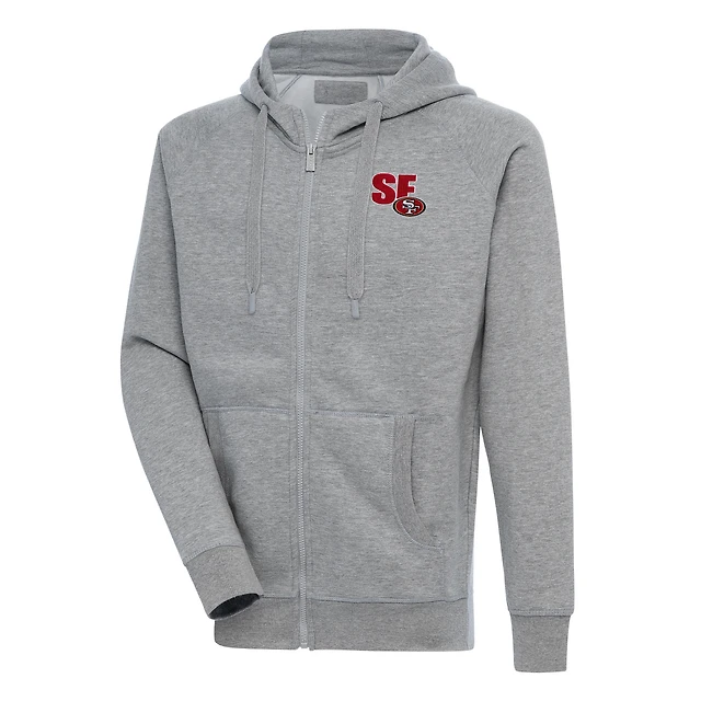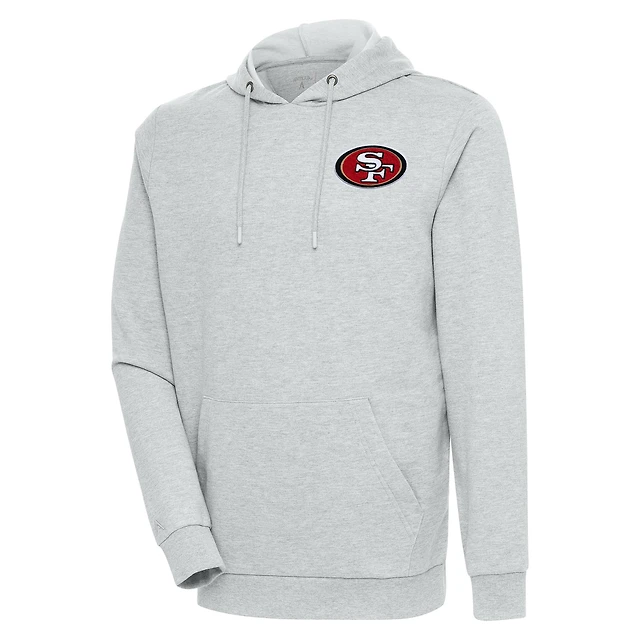 Men's Antigua Heathered Black San Francisco 49ers Absolute Chenille Pullover Hoodie