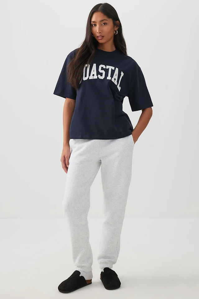 Ardene Oversized Graphic T-Shirt in Dark Blue | Size | 100% Cotton