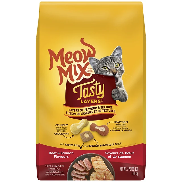 Meow Mix Tasty Layers Dry Kibble - Beef and Salmon 1.36kg