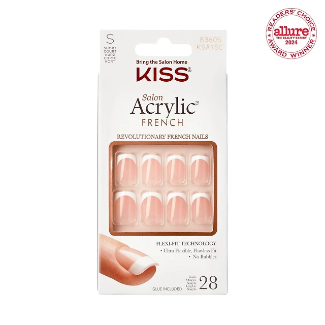 KISS Salon Acrylic French Color False Nails Kit - Short - Coffin - Flame - 28's