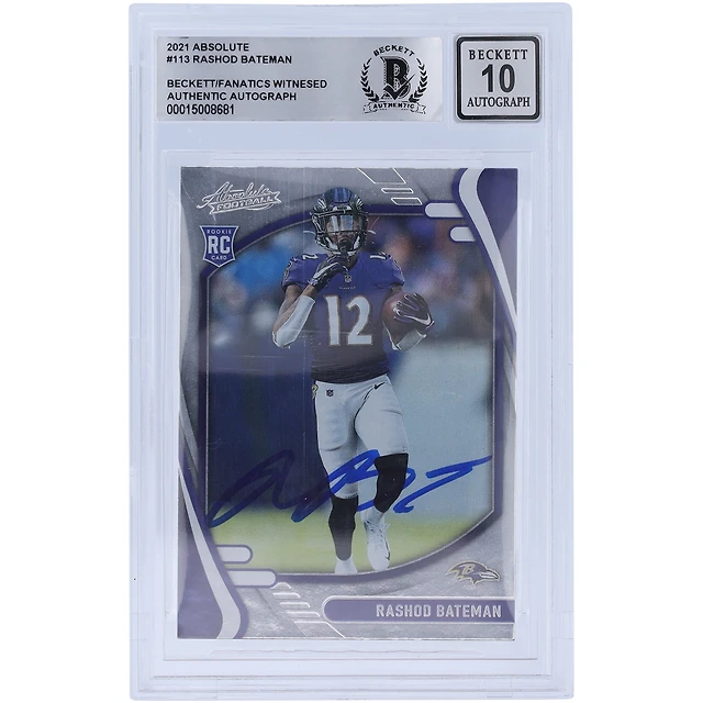 Panini America Rashod Bateman Baltimore Ravens Autographed 2021 Panini Absolute #113 Beckett Fanatics Witnessed Authenticated 10 Rookie Card