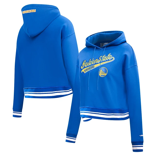 Women's Pro Standard Royal Golden State Warriors Script Tail Cropped Pullover Hoodie
