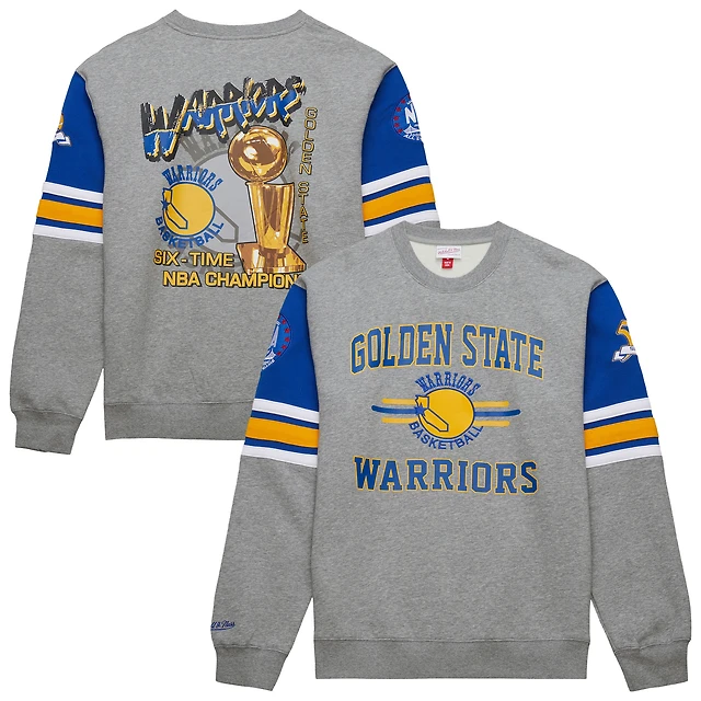 Men's Mitchell & Ness Heather Gray Golden State Warriors Hardwood Classics All Over 4.0 Pullover Sweatshirt