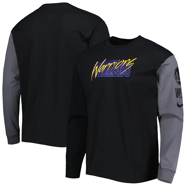 Men's Nike Black Golden State Warriors Courtside Versus Flight MAX90 Long Sleeve T-Shirt