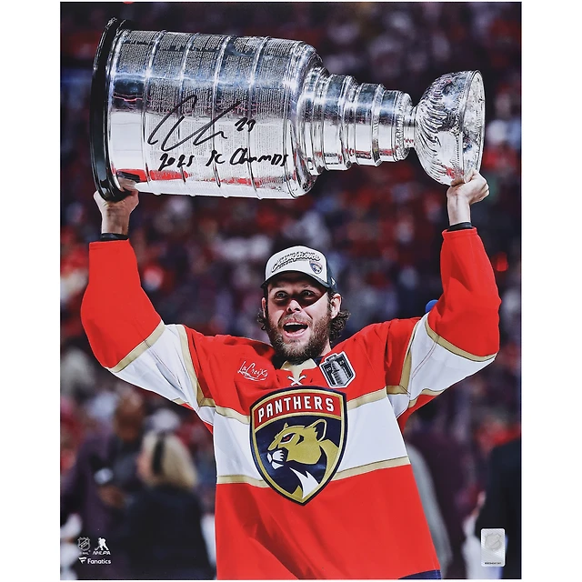 Aaron Ekblad Florida Panthers Autographed 2025 Stanley Cup Champions 16" x 20" Raising Cup Photograph with "2025 SC Champs" Inscription