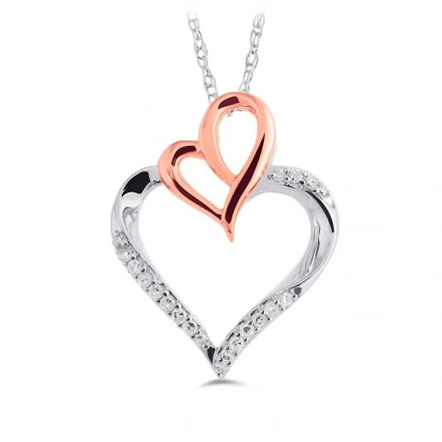 Sterling Silver 14K Rose Gold Plated 0.07CTW Heart Pendant