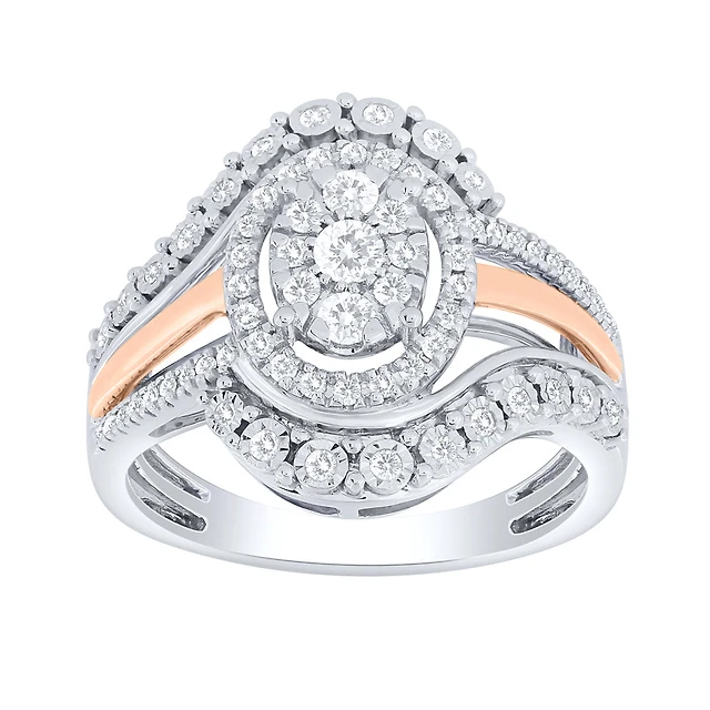 Diamond Halo Cluster Ring 10K White and Rose Gold (0.25ct tw)