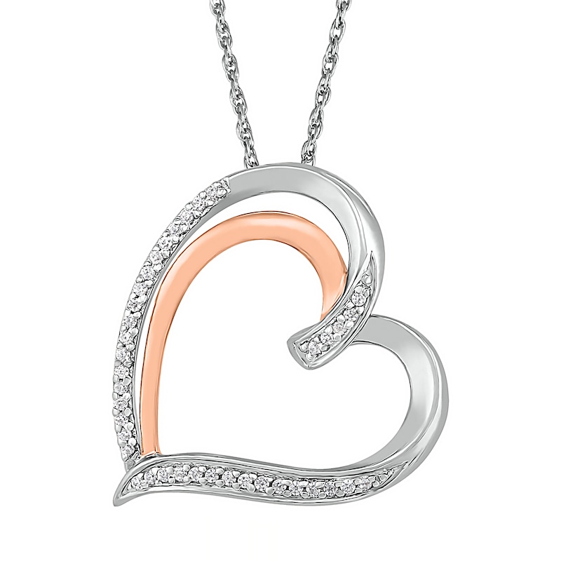 0.087 CT. T.W. Diamond Double Row Heart Pendant in Sterling Silver and 10K Rose Gold|Peoples Jewellers