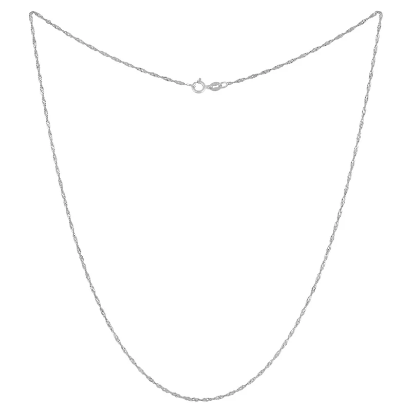 Beautifully crafted in 10k white gold, this gorgeous singapore link chain is the embodiment of simplicity. The chain features highly polished links and is 16 inches in length.