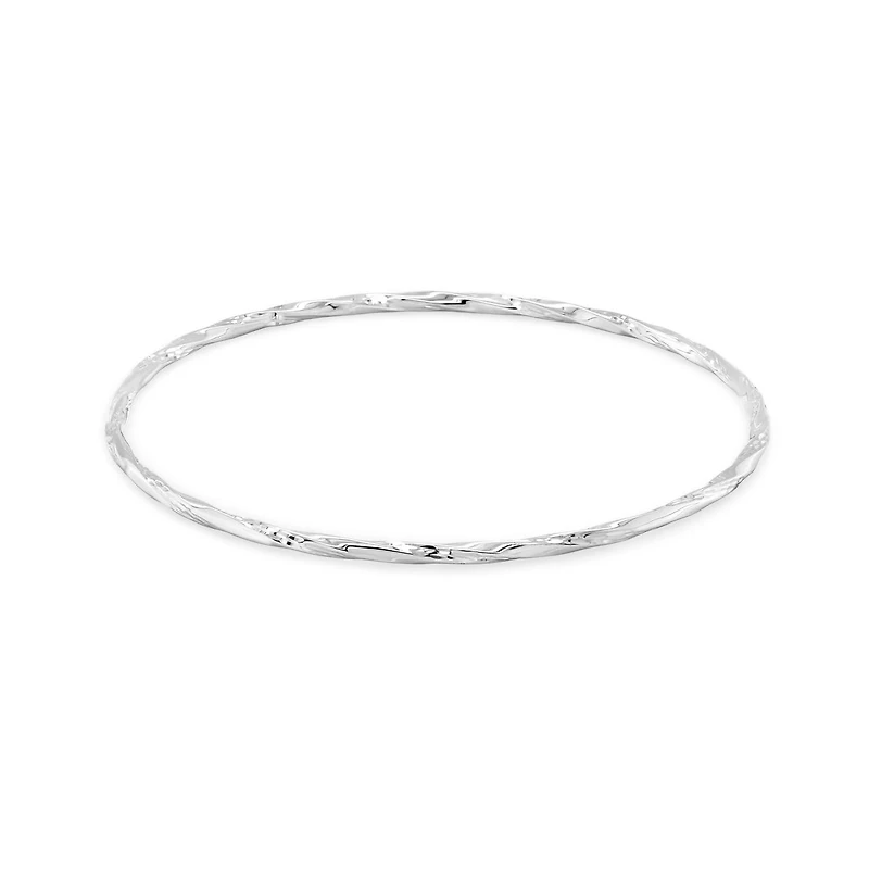 This classic yet trendy twisted slip-on bangle is crafted in lustrous 10K white gold. Great for stacking with other bangles this bracelet is a perfect way to add a touch of elegance and sophistication to any ensemble. This stunning piece makes a lovely addition, suitable for all occasions.