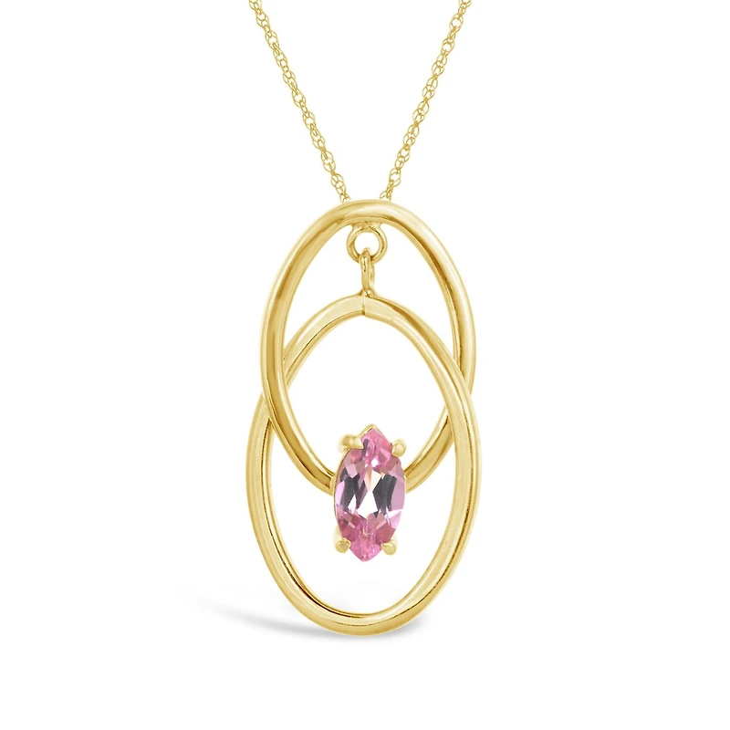 This bold and brilliant created pink sapphire pendant is crafted in lustrous 10k yellow gold. This gorgeous necklace is sure to make a standout addition to any jewellery collection. Instantly add a touch of colour and elegance to any ensemble with this stunning gemstone piece.