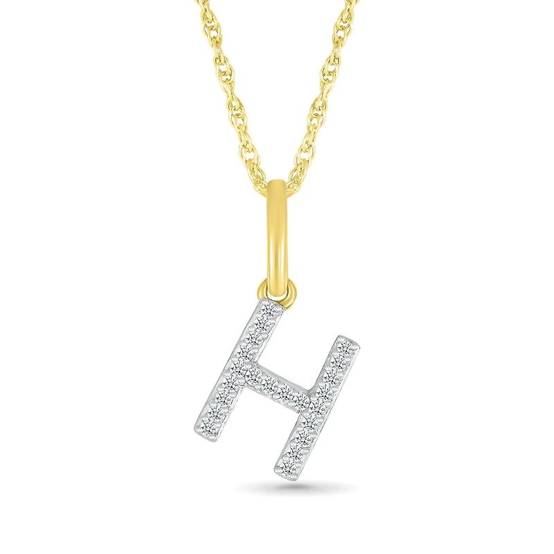 10K Yellow Gold & Diamond "H" Initial Pendant
