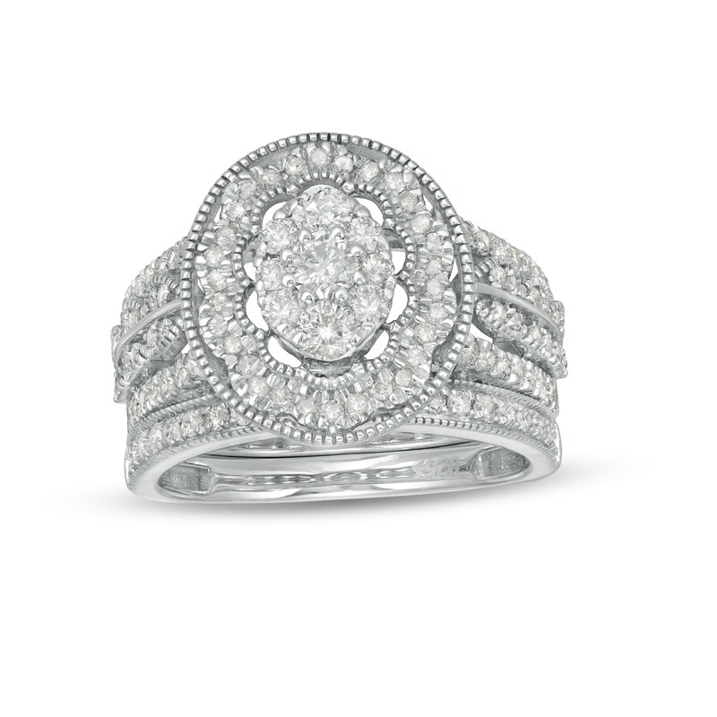 0.70 CT. T.W. Oval Diamond Frame Vintage-Style Bridal Set 14K White Gold (I/I1)