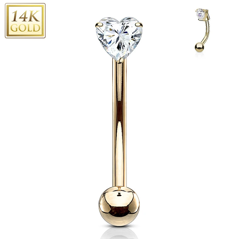 14K Gold Crystal Heart Curved Barbell 16g