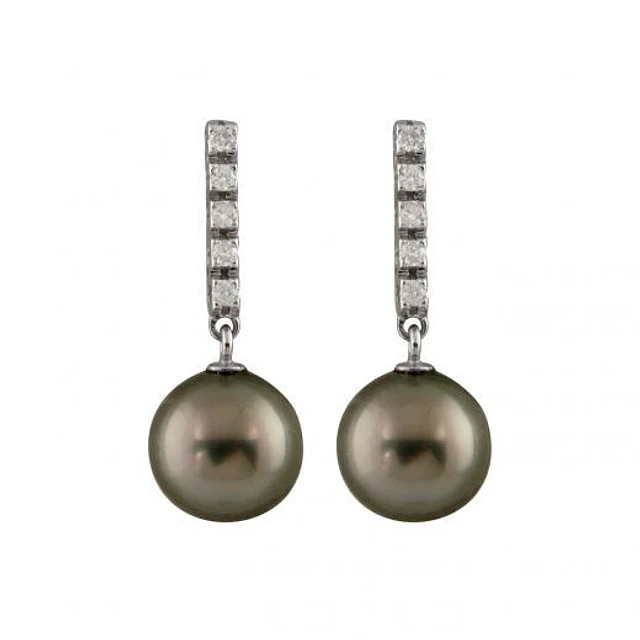 14K White Gold 8mm Tahitian Pearl & Diamond Earrings