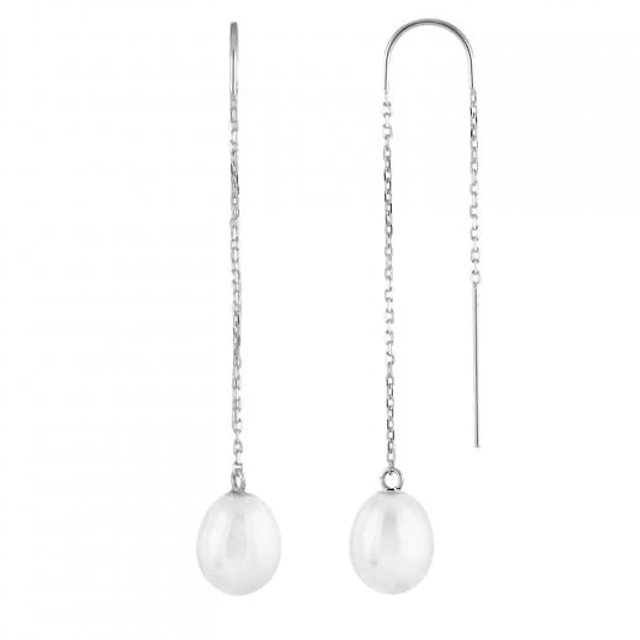 14K White Gold Barbell 6-9.5mm Pearl Earrings