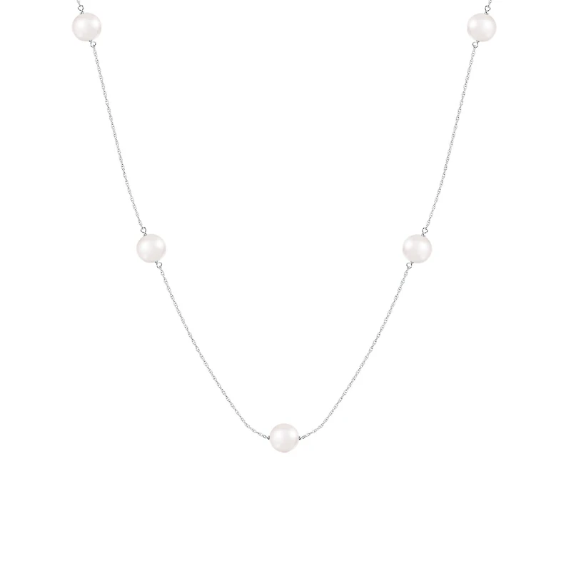 14K White Gold Tin Cup 7mm Freshwater Pearl 18" Necklace