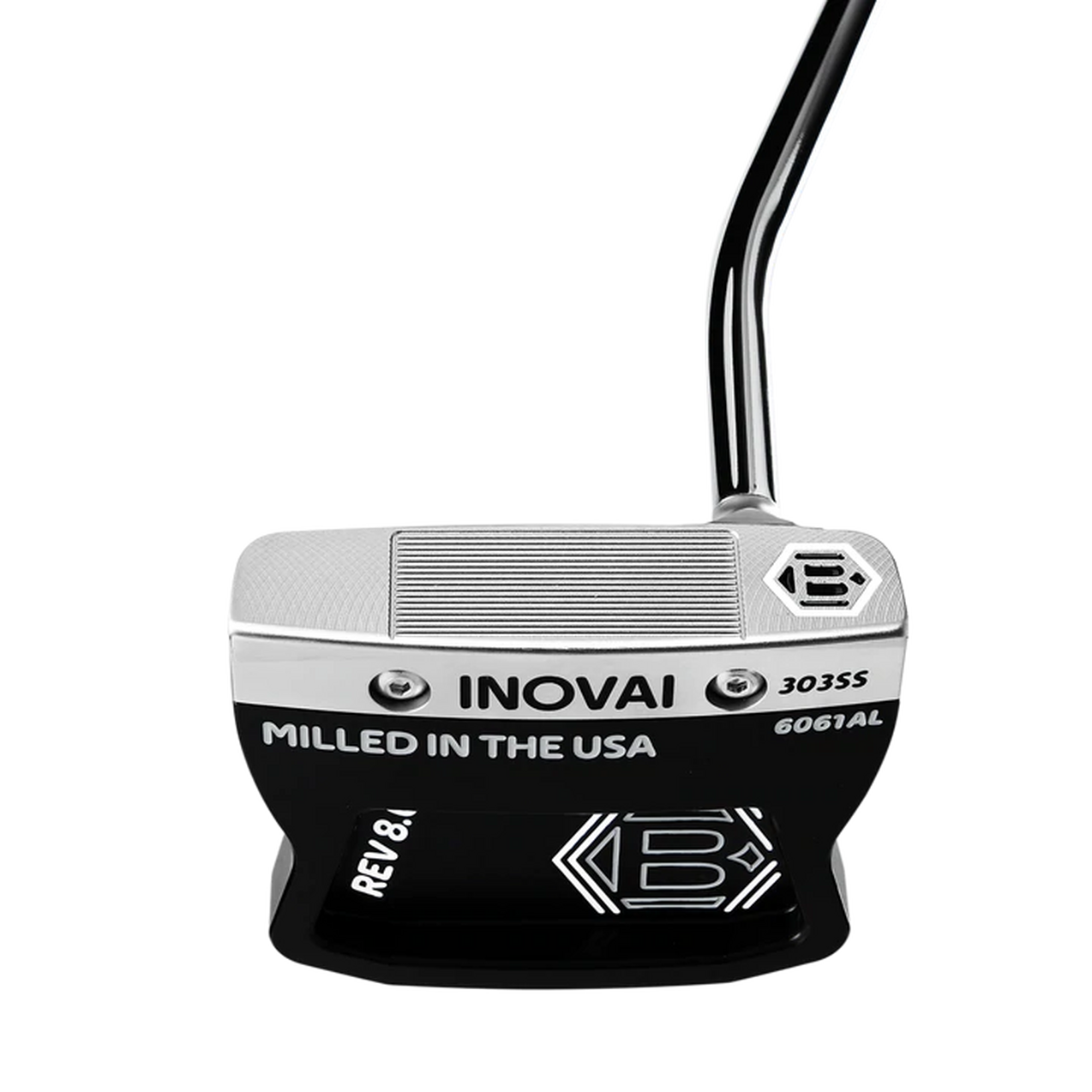 The all-new INOVAI 8.0 was designed and engineered by Sam Bettinardi to instill maximum confidence and forgiveness while putting. The 8.0 was created with a 303 Stainless Steel front piece for a solid feel at impact, and a Military Grade 6061 Aluminum body that was designed with defined wings that offer more stability and higher M.O.I. numbers. The INOVAI 8.0 Spud has minimal toe hang, and is the perfect near face balanced mallet for players with a straight-back, straight-through putting stroke. Precision milled to 358 grams in a gorgeous two-tone Stealth Black and Diamond Blast finish, the all new 8.0 offers players optimal visual cues for a clean appearance and enhanced alignment while framing the ball perfectly at address.