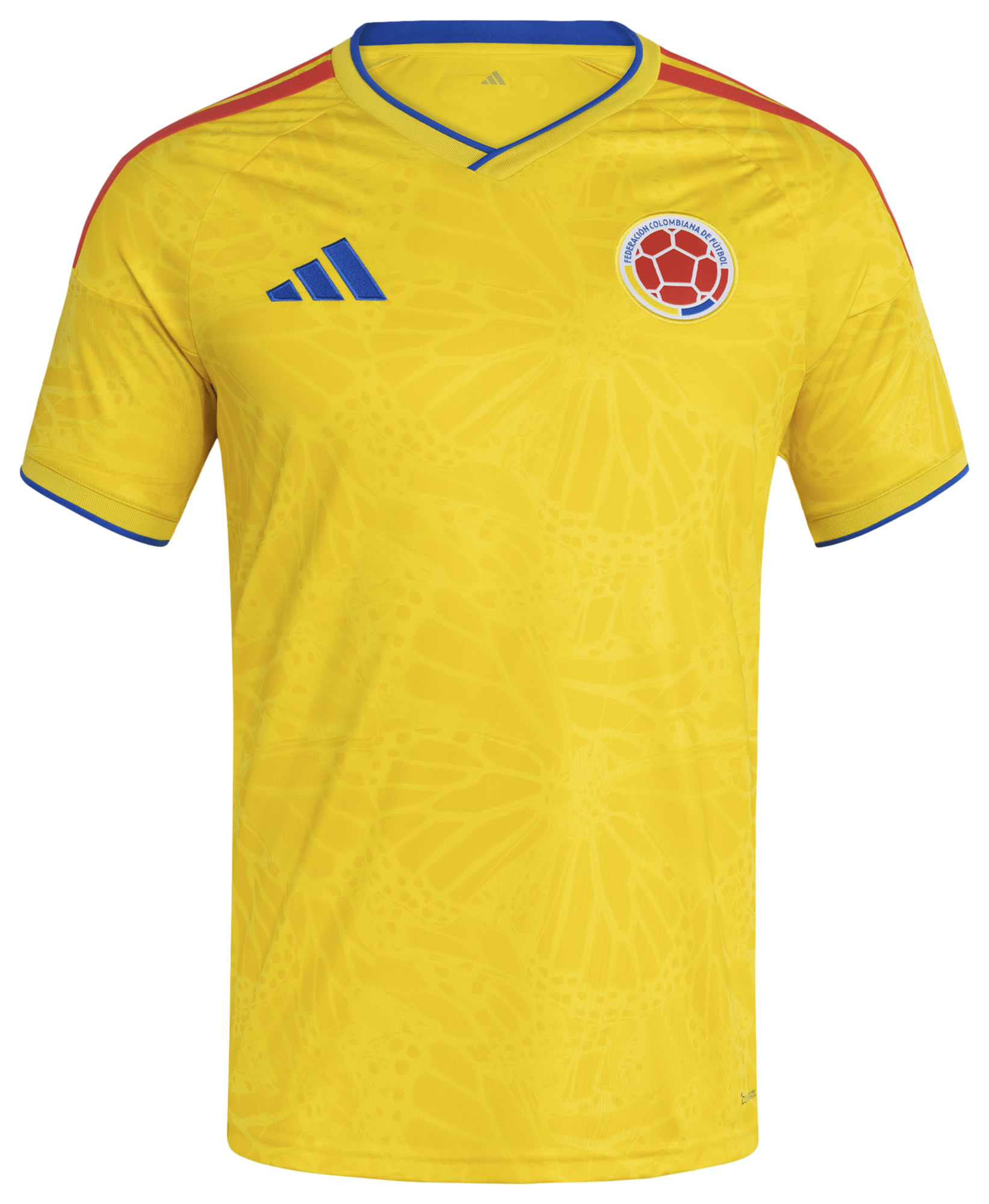 The adidas Colombia World Cup Home Jersey is a tribute to the vibrant spirit of Colombian football. Inspired by magical realism, this jersey blends fantastic elements with the real world, capturing the essence of Colombian culture. Crafted with a slim fit, this jersey offers a sleek silhouette, a smart choice for showcasing your passion for the game. The V-neck design adds a touch of classic style, while the embroidered adidas logo and club crest highlight your team pride.