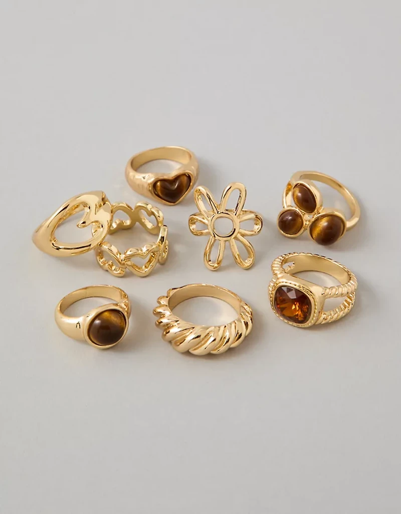 AE Brown Stone & Gold-Finish Rings 8-PackAE Brown Stone & Gold-Finish Rings 8-Pack