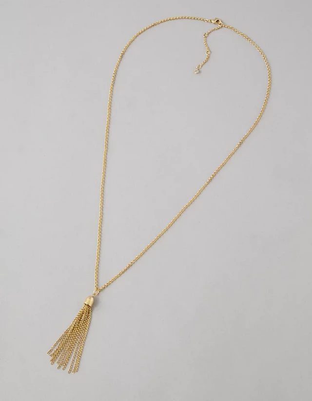 Long Gold Multi-Strand Necklace with Stone & Tassel