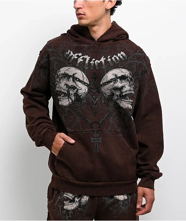 Affliction Collapse Rhinestone Brown Wash Hoodie