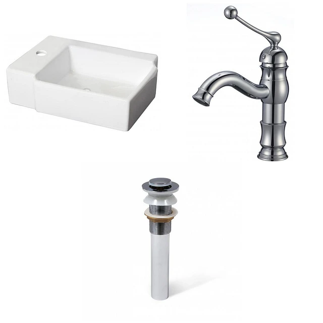 American Imaginations 16.25-in. W Wall Mount White Bathroom Vessel Sink Set For 1 Hole Left Faucet AI