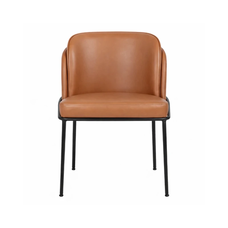 Enjoy the look of fine leather without the cruelty or expense when you bring home this Angelo faux leather dining chair. Upholstered in Cognac vegan leather, this chair features matte black iron legs for sturdy support. Count on the double cushion back to keep you or guests comfortable from appetizers through dessert. Pair this pretty dining chair with the table of your choice for a complete look.