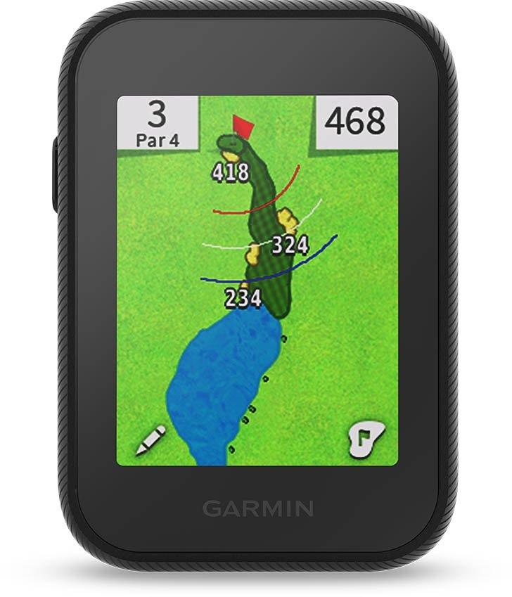 • Sleek, compact handheld golf GPS with 2.3-inch colour touchscreen display