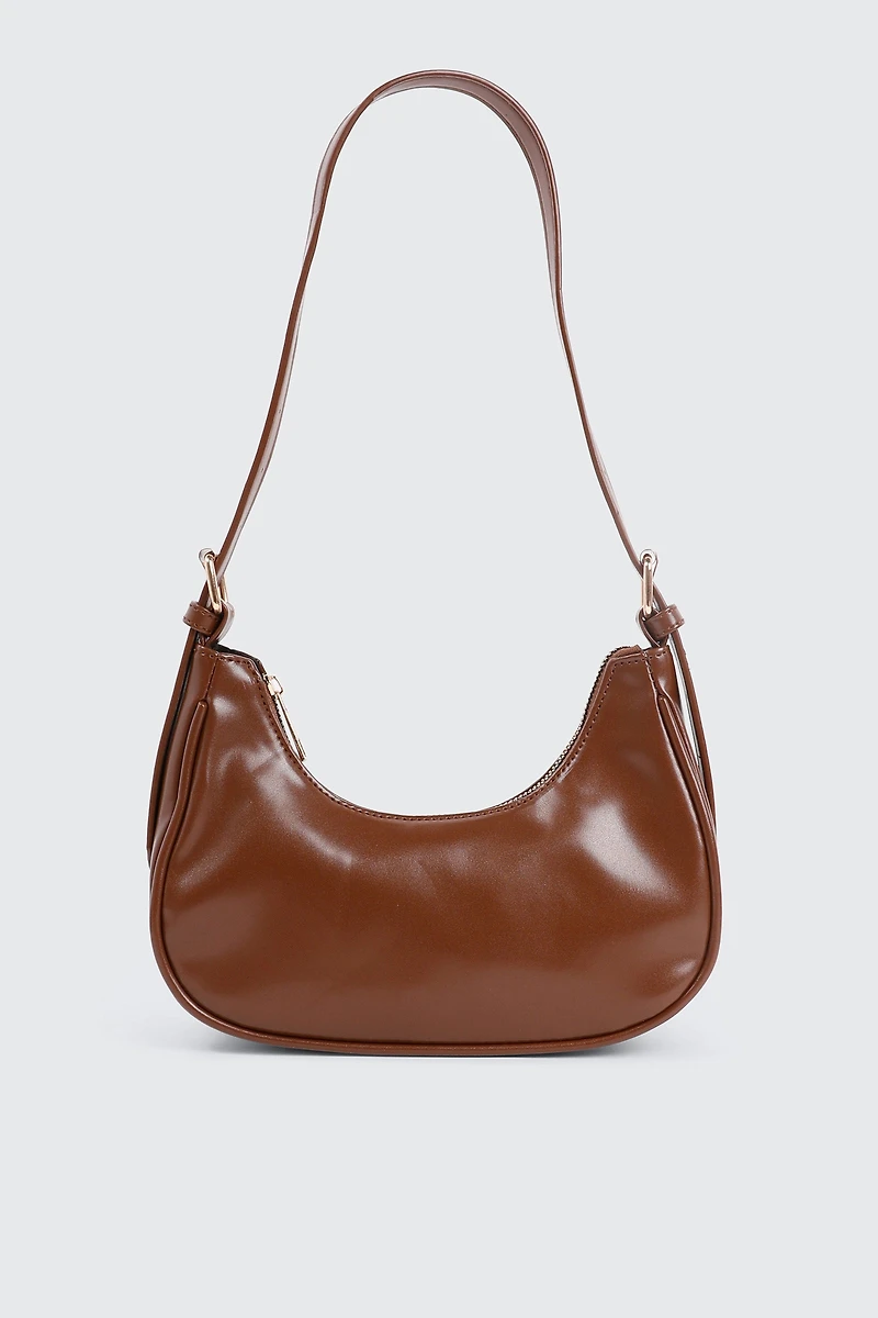Faux leather shoulder bag. Zipper closure Adjustable strap Exterior: 100% polyurethane Lining: 100% polyester Height: 4 in Length: 9 in Width: 3 in | Ardene Faux Leather Shoulder Bag in Brown | Faux Leather/Polyester