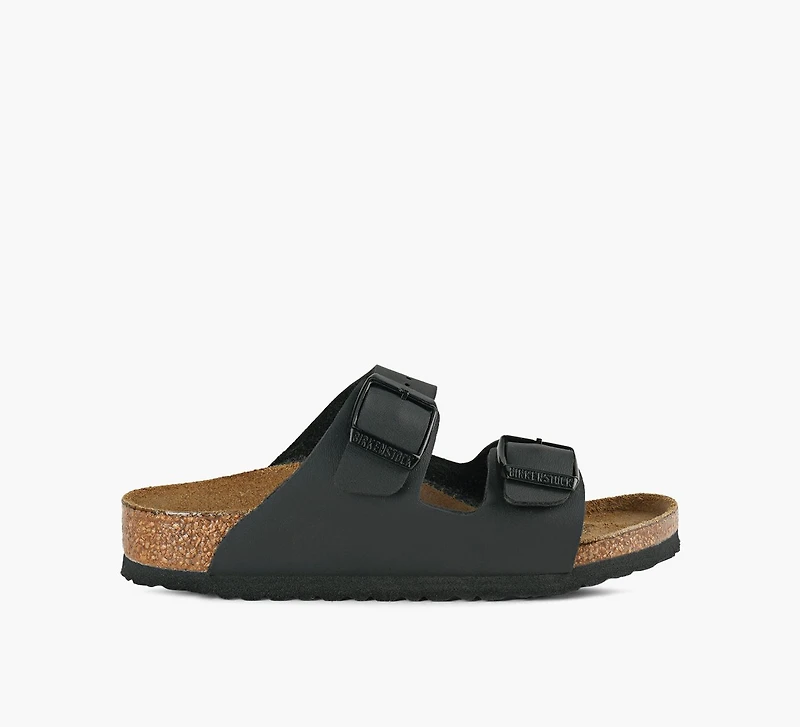 A timeless icon since 1973, the kids' Birkenstock Arizona sandal blends minimalist design with legendary comfort. Its anatomical cork-latex footbed supports natural movement, for little feet, while adjustable straps crafted from the label's durable Birko-Flor® ensure a custom fit that lasts. Each pair is crafted for everyday ease. A true staple that transcends trends and generations.