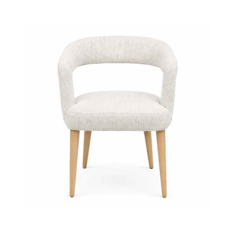 The Aveline Dining Chair blends solid oak craftsmanship with soft, linen-style upholstery for a look that’s both durable and sophisticated. Its natural wood grain adds warmth and character, while the gently curved back and cushioned seat offer comfort for long meals and lively conversations. A versatile piece that complements a range of dining aesthetics.