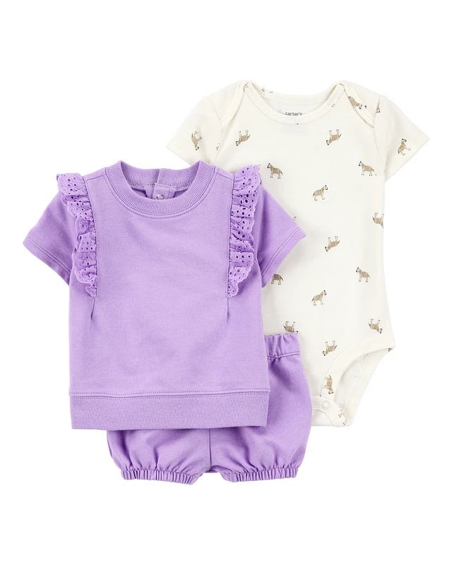 Baby Boy 3-Piece Dinosaur Vest Outfit Set - Grey