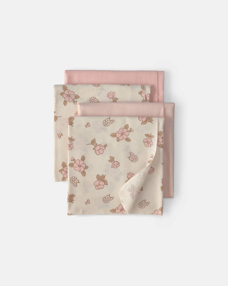 Baby 4-Pack Flowers Receiving Blankets - Pink/Ivory