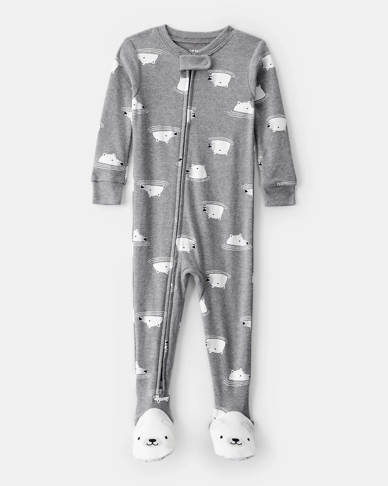 Baby Boy Polar Bear Cotton Snug Fit 2-Way Zip Footie 1-Piece Pyjamas - Grey